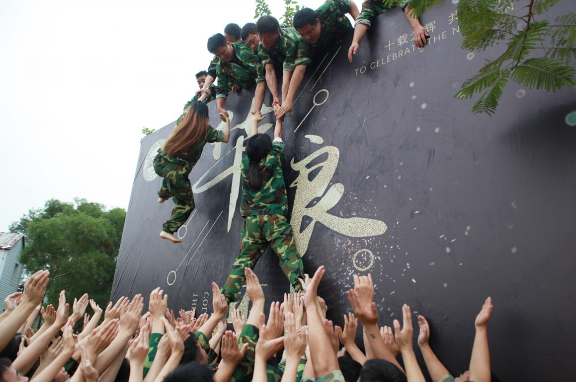 最后的畢業(yè)墻環(huán)節(jié)是最感動(dòng)我的,我內(nèi)心滿滿的都是感動(dòng),大家團(tuán)結(jié)一致在19分鐘的時(shí)間完成挑戰(zhàn),我們都相互驚呆了。是的,沒有克服不了的困難,辦法永遠(yuǎn)比困難多。只要大家都在一個(gè)頻道上,為一份事業(yè)共同付出努力,總會(huì)成功,心在一起才是團(tuán)隊(duì)。最后,感謝我們的老板,感謝公司給了我一個(gè)這么難忘深刻的回憶。