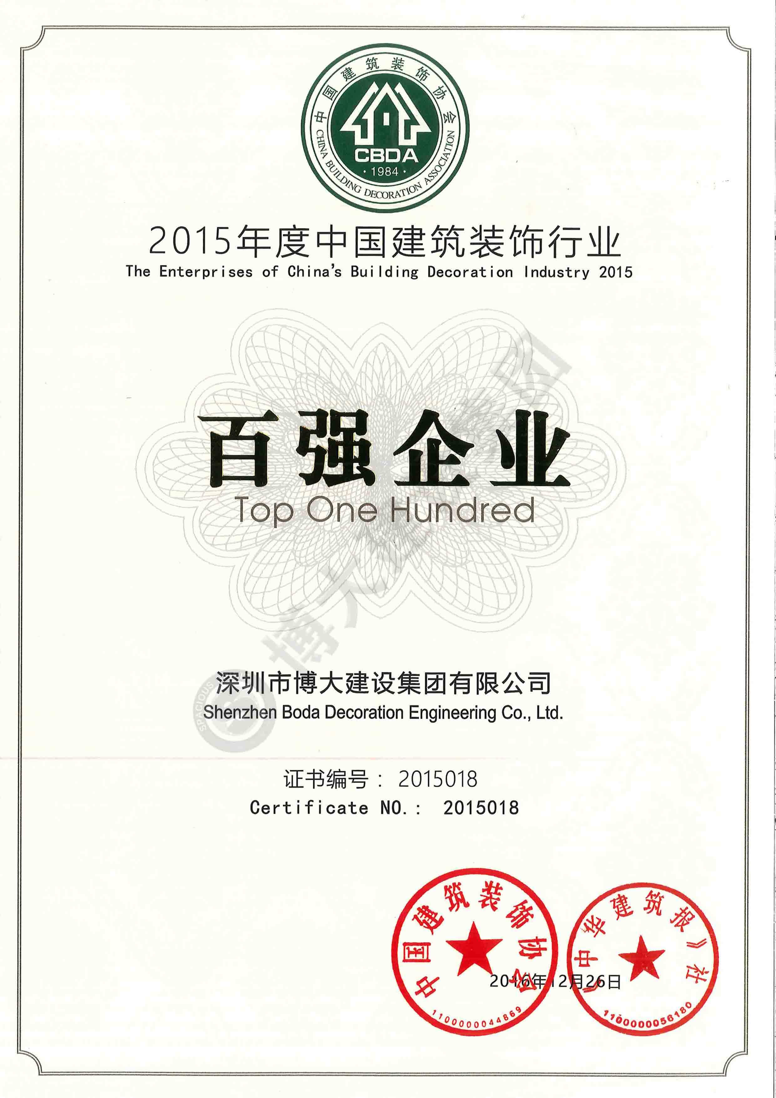 2015中國建筑裝飾行業百強企業