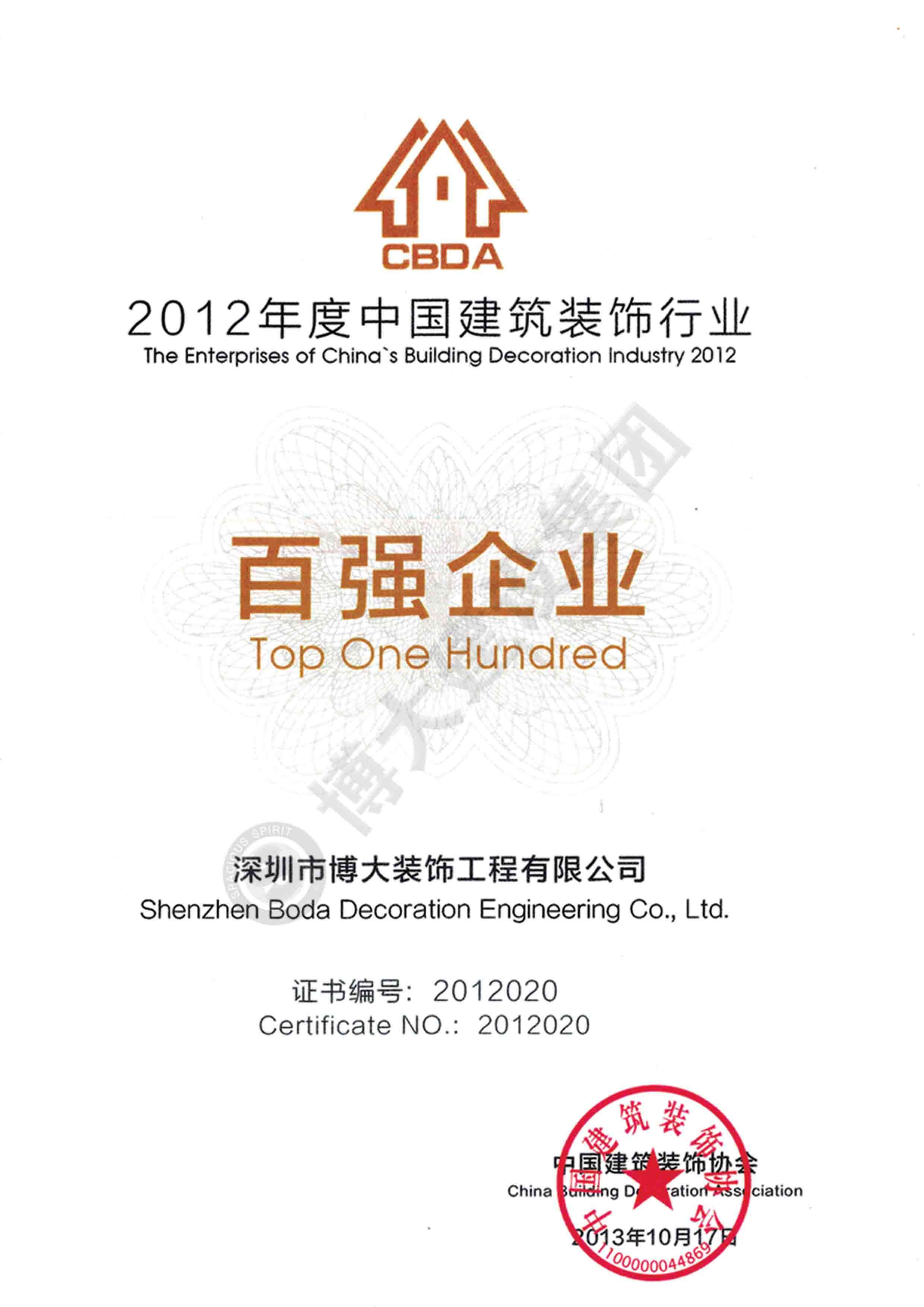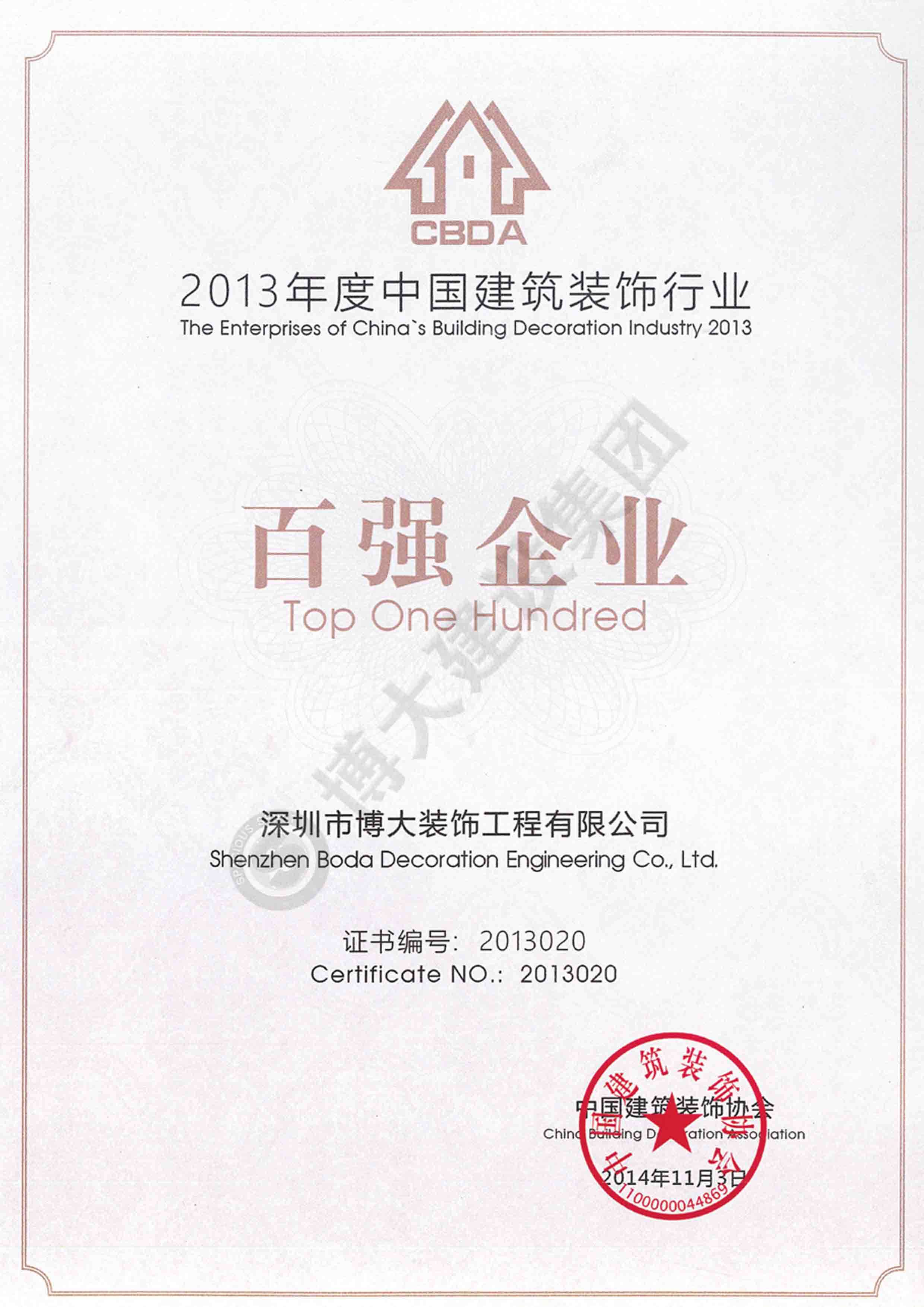 2013中國建筑裝飾行業百強企業