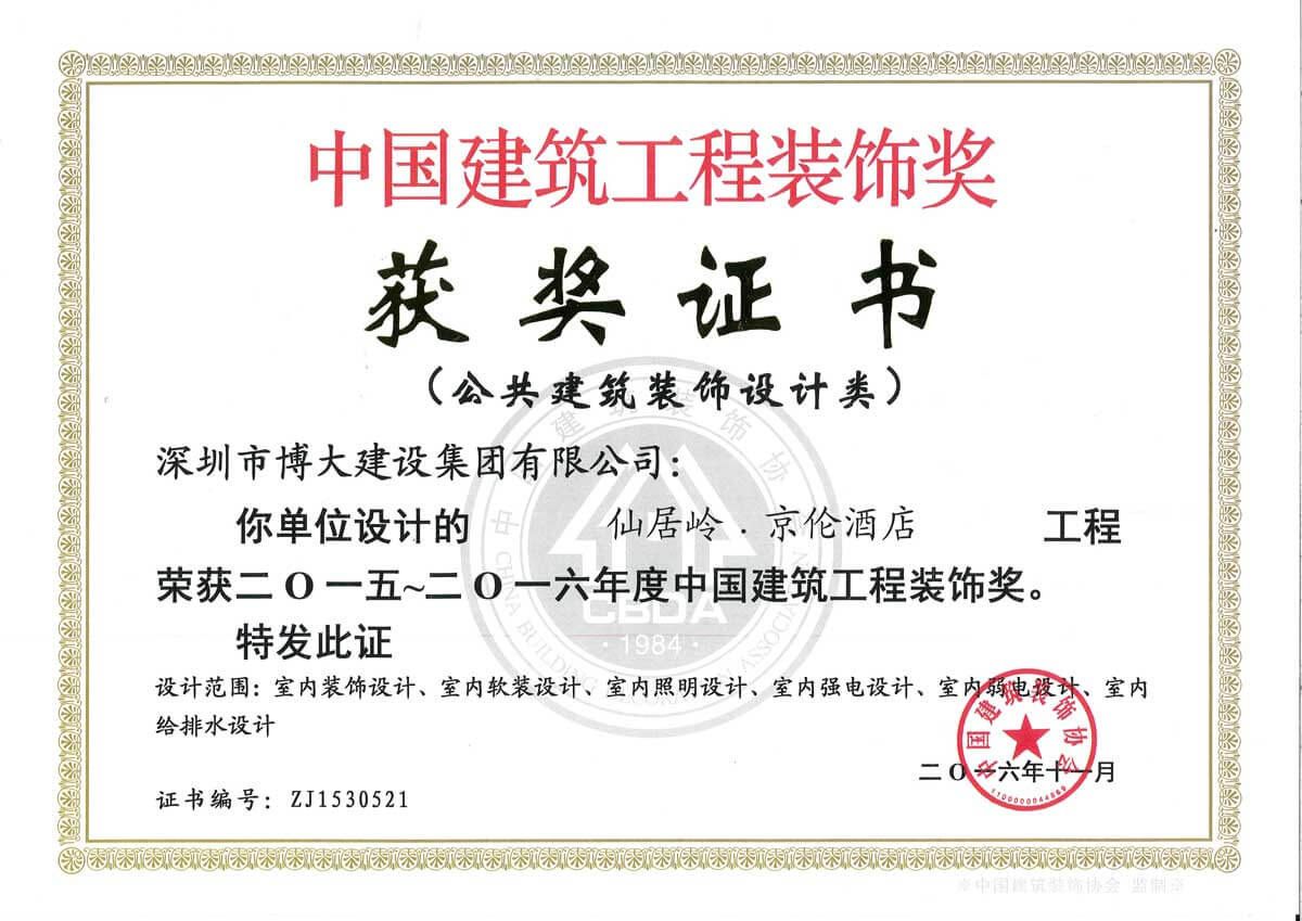 中國建筑工程裝飾獎(仙居嶺.京倫酒店-設計)