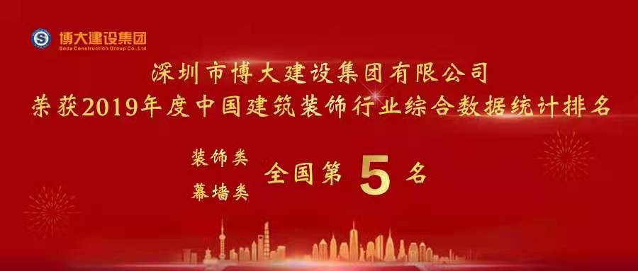 熱烈祝賀博大躍居中國建筑裝飾行業百強第五名!