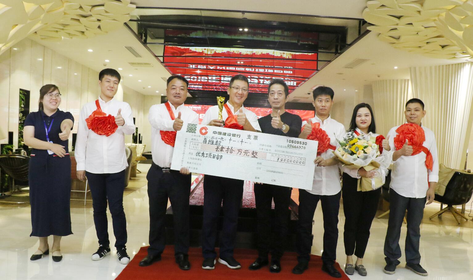 博大建設集團廣西分公司深耕廣西大地,2012年至今,相繼承接了38個項目。9月,又成功中標柳州市民服務中心精裝修工程,合同造價超過2億元。為了表彰廣西分公司的杰出業(yè)績,特授予其2019年第三季度突出貢獻獎。