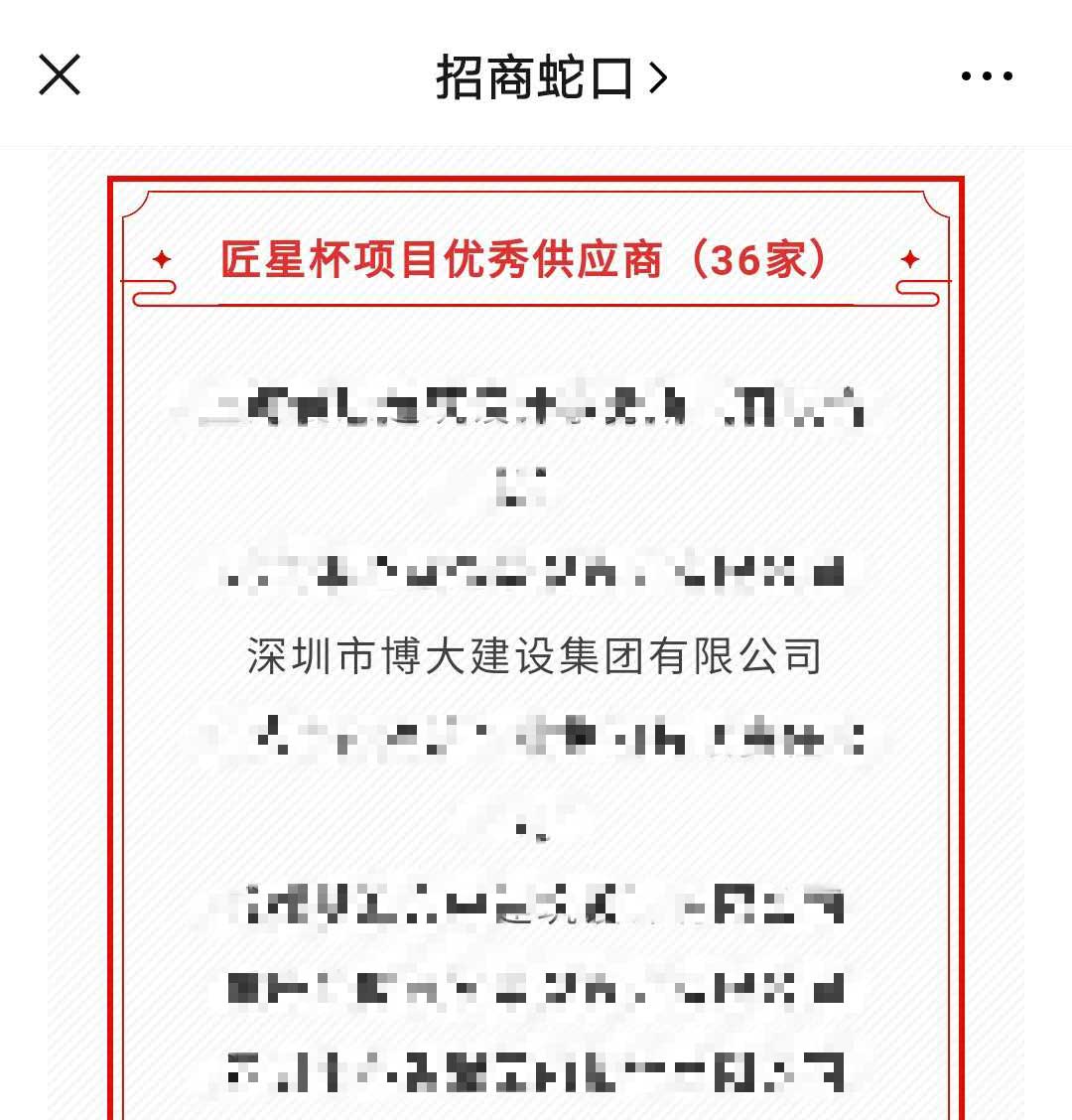 博大建設(shè)集團(tuán)作為招商蛇口的長期合伙伙伴,繼獲得“2018年度優(yōu)秀新供應(yīng)商”后,再次榮獲“匠星杯項(xiàng)目?jī)?yōu)秀供應(yīng)商”稱號(hào)。