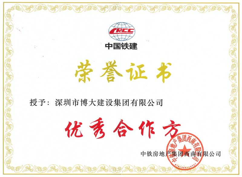 博大建設(shè)集團(tuán)作為中國鐵建的長期合作伙伴,已連續(xù)數(shù)年榮獲“優(yōu)秀合作方”稱號(hào)。