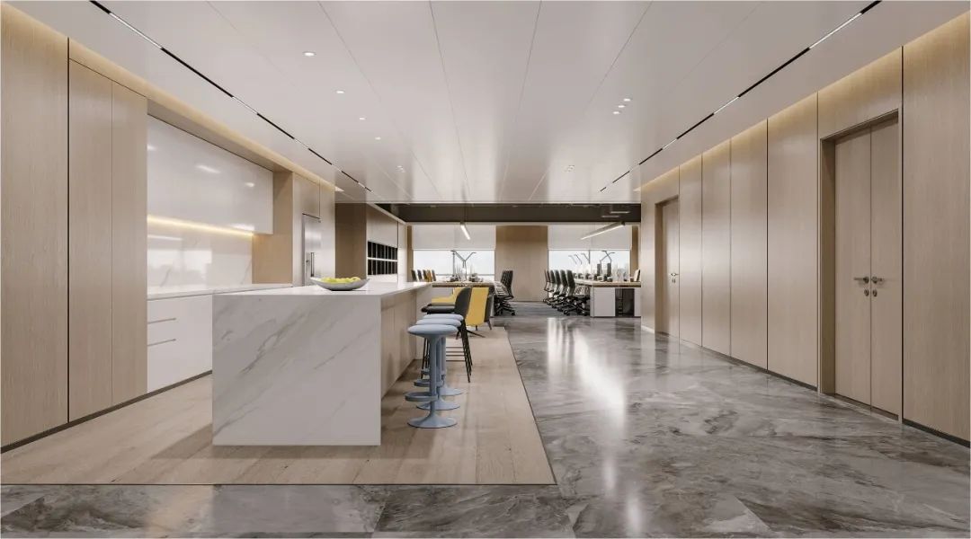 該辦公樓是集辦公,信息化,員工配套,培訓(xùn)會(huì)議,企業(yè)展廳為一體的綜合性辦公樓,包含2棟建筑,總面積約4.8萬㎡。其中:1號(hào)樓地上建筑面積1.8萬㎡,2號(hào)樓地上建筑面積2.8萬㎡,博物館建筑面積2000㎡。博大的施工范圍涵蓋一層接待大堂;二三層信息化機(jī)房與系統(tǒng)運(yùn)維;四五層職工餐廳;六至十二層科技辦公樓層;十三至十四層為企業(yè)特色辦公樓層;十五層培訓(xùn)會(huì)議樓層;十六層文化活動(dòng)中心,局部區(qū)域挑空作為羽毛球場(chǎng)地;十七層信合史館等在內(nèi)的全部施工區(qū)域。