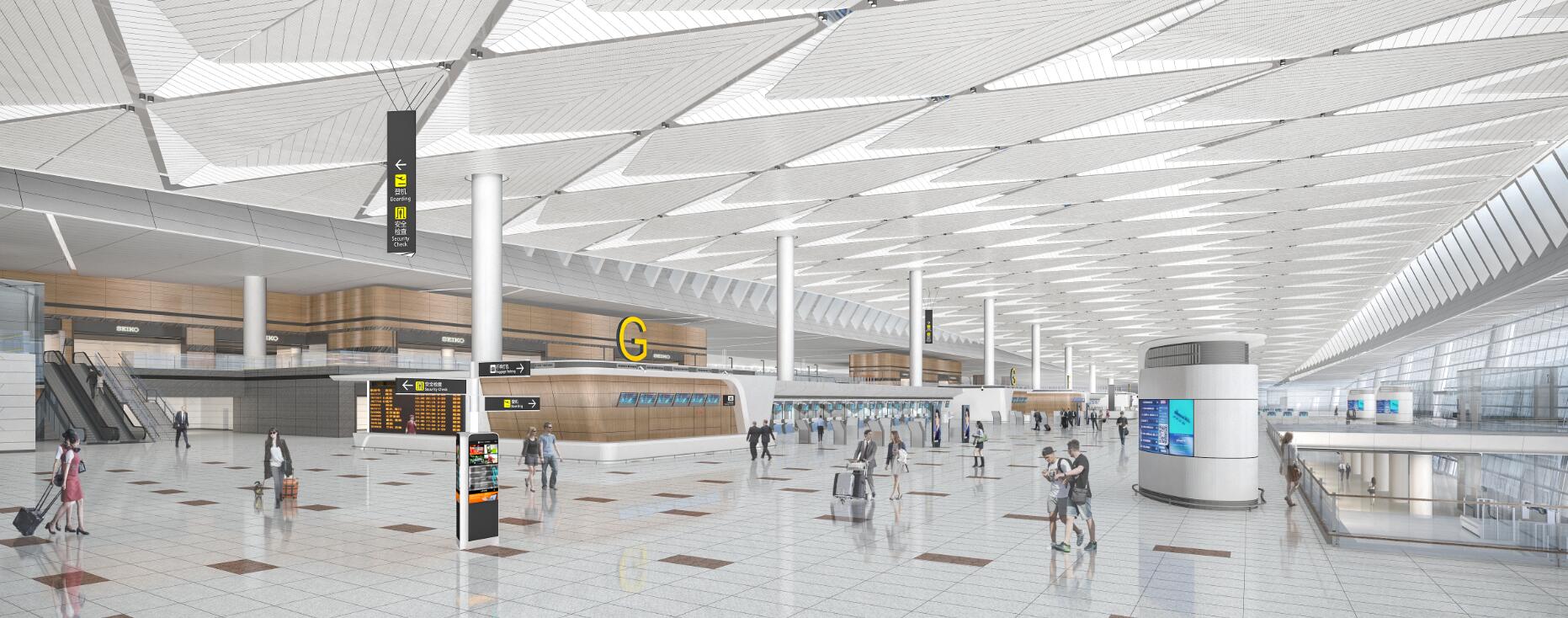 博大承建范圍涵蓋T2航站樓L2層到達迎賓廳、行李大廳、APM站臺、遠機位到達及旅客區(qū)域;L1層國內遠機位出發(fā)的精裝修工程及部分安裝工程施工等。